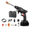 1.Después de recibir el producto, se recomienda cargar completamente ambas baterías antes de su uso. Las baterías pueden descargarse después de un largo tiempo de transporte. Después de enchufar el cargador, las baterías suelen mostrar color rojo, y color verde después de 2-3 horas de carga, lo que indica que las baterías están completamente cargadas, y en este momento puede conectar la limpiadora a presión inalámbrica para el trabajo normal de limpieza.